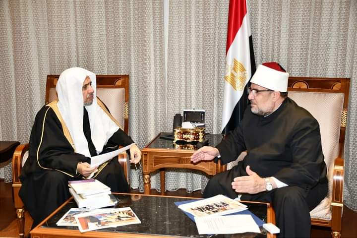 استقبل معالي أ.د/ محمد مختار جمعة وزير الأوقاف معالي الشيخ الدكتور/ محمد بن عبد الكريم العيسى الأمين العام لرابطة العالم الإسلامي والوفد المرافق لسيادته بمقر وزارة الأوقاف بالعاصمة الإدارية الجديدة، واصطحبه لزيارة دار القرآن الكريم ومسجد مصر ومركزها الثقافي الإسلامي.