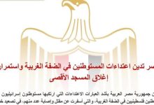 - مصر تدين اعتداءات المستوطنين في الضفة الغربية واستمرار إغلاق المسجد الأقصى