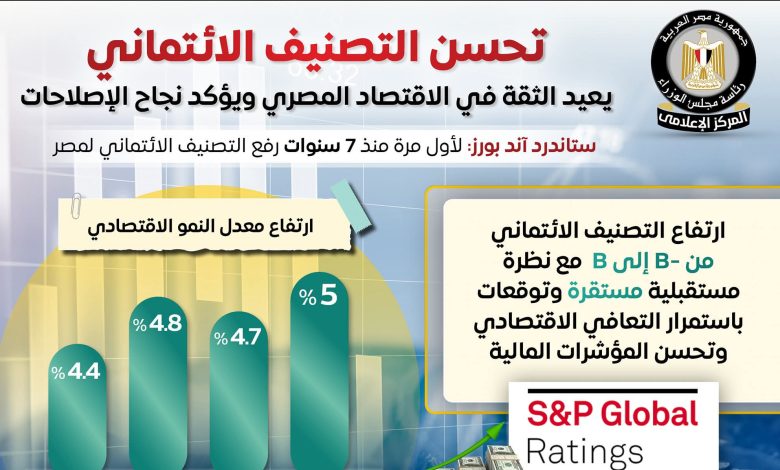 فمن جانبها، قامت وكالة “ستاندرد آند بورز” برفع التصنيف الائتماني لمصر، لأول مرة منذ 7 سنوات.