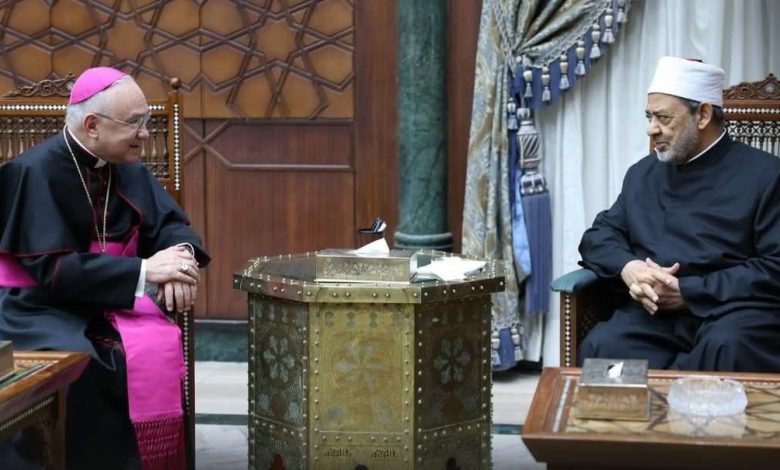الدكتور احمد الطيب شيخ الأزهر يستقبل المطران إدغار بينيا بارا وكيل الشؤون العامة بأمانة سر دولة الفاتيكان