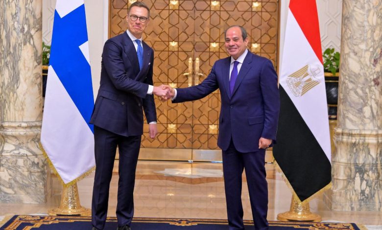 وأشار السفير محمد الشناوي، المتحدث الرسمي، إلى أن السيد الرئيس رحب بزيارة الرئيس الفنلندي إلى مصر، مؤكدًا سيادته اعتزاز مصر بالعلاقات الثنائية مع فنلندا، ومشيرًا إلى أهمية مواصلة العمل بين الجانبين بهدف تطويرها في مختلف المجالات، بما في ذلك المجالات السياسية، والاقتصادية والتجارية. ومن جانبه، أعرب الرئيس الفنلندي عن اعتزازه بزيارة مصر ولقاء السيد الرئيس، مؤكدًا تقديره لحُسن الاستقبال وكرم الضيافة، ومشيرًا إلى حرص الجانب الفنلندي على تطوير العلاقات الثنائية مع مصر والانتقال بها إلى آفاق أرحب استناداً إلى ما تمتلكه مصر وفنلندا من مقومات تسمح بدفع العلاقات الثنائية في العديد من المجالات، فضلاً عن التشاور مع السيد الرئيس إزاء الأزمات الإقليمية والدولية ذات الاهتمام المشترك. وفي هذا السياق، نوه الرئيس الفنلندي بحرصه على اصطحاب وفد من رواد الأعمال الفنلنديين لبحث فرص استفادة الشركات الفنلندية من مناخ الاستثمار في مصر.