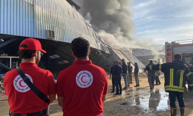 الهلال الأحمر المصري يساند جهود الحماية المدنية والإسعاف في حريق مصنع بلاستيك بأكتوبر