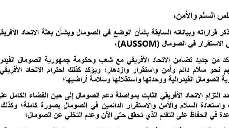 تحت الرئاسة المصرية … مجلس السلم والأمن التابع للاتحاد الافريقى يصدر بيانين دعماً للصومال والسودان