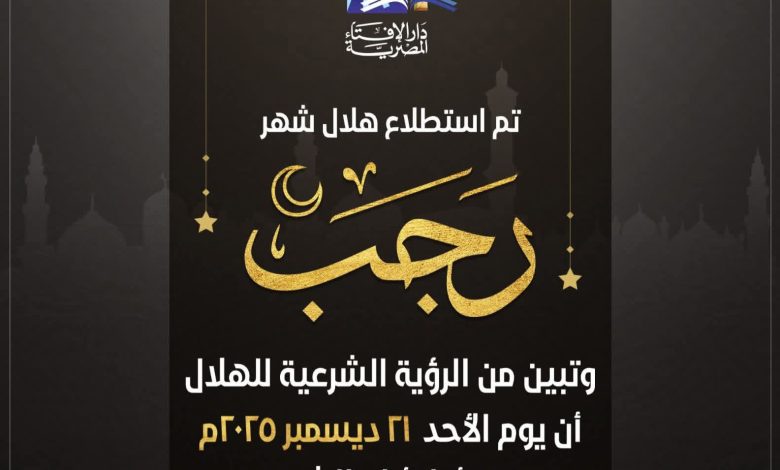 دار الإفتاء المصرية : اليوم الأحد اول ايام شهر رجب لعام 1447هـ