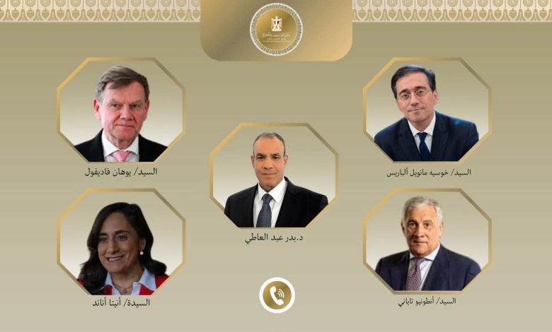 في إطار الاتصالات المكثفة والتحركات الدبلوماسية التي تقودها مصر لتنسيق الجهود الدولية بشأن إعادة إعمار قطاع غزة، جرى عدد من الاتصالات الهاتفية بين د. بدر عبد العاطي وزير الخارجية والهجرة وشئون المصريين بالخارج وكل من السيد “أنطونيو تاياني” نائب رئيس الوزراء وزير خارجية إيطاليا، والسيد “خوسيه مانويل ألباريس” وزير خارجية إسبانيا، والسيد “يوهان فاديفول” وزير خارجية ألمانيا، والسيدة “أنيتا أناند” وزيرة خارجية كندا.