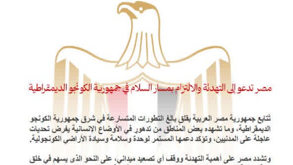 تُتابع جمهورية مصر العربية بقلقٍ بالغ التطورات المتسارعة في شرق جمهورية الكونجو الديمقراطية، وما تشهده بعض المناطق من تدهورٍ في الأوضاع الإنسانية يفرض تحديات عاجلة على المدنيين، وتؤكد دعمها المستمر لوحدة وسلامة وسيادة الأراضي الكونجولية.