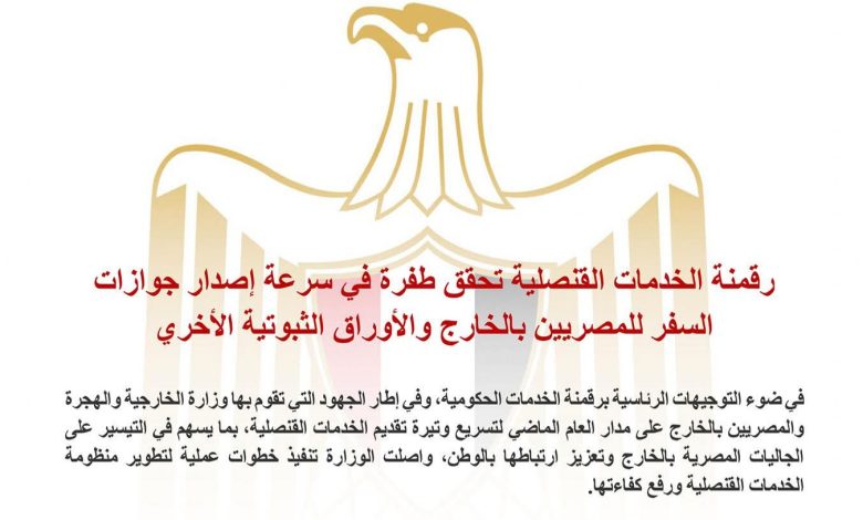 وزارة الخارجية : رقمنة الخدمات القنصلية تحقق طفرة في سرعة إصدار جوازات السفر للمصريين بالخارج والأوراق الثبوتية الأخري