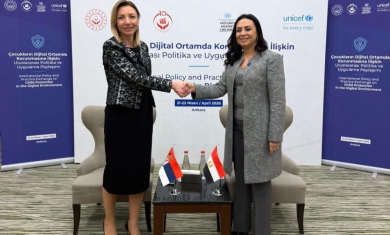 التقت الدكتورة مايا مرسي وزيرة التضامن الاجتماعي، السيدة تانجانا ماكورا وزيرة المساواة بين الجنسين والوقاية من العنف ضد النساء والتمكين الاقتصادي والسياسي للنساء بجمهورية صربيا، وذلك على هامش مشاركتها في اجتماع المائدة المستديرة حول “تبادل السياسات والممارسات الدولية بشأن حماية الطفل في البيئة الرقمية” بأنقرة، بحضور الأستاذة دينا الصيرفي مساعدة وزيرة التضامن الاجتماعي للتعاون الدولي والعلاقات والاتفاقات الدولية.