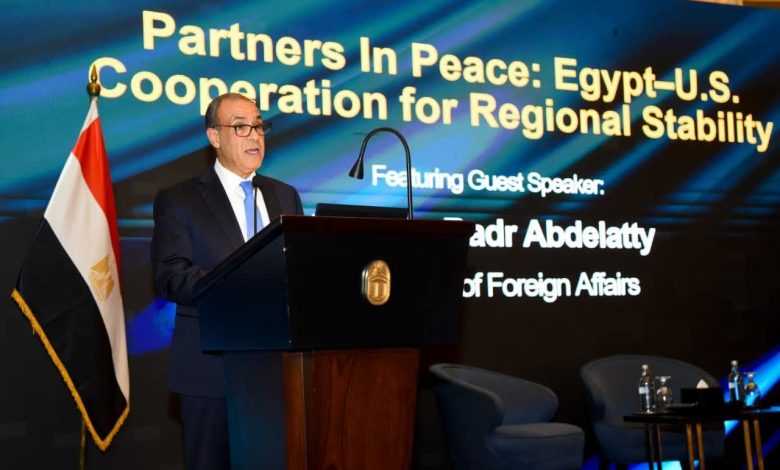 وزير الخارجية يلقي كلمة شاملة حول محددات الموقف المصري من أزمات المنطقة في غرفة التجارة الأمريكية بالقاهرة