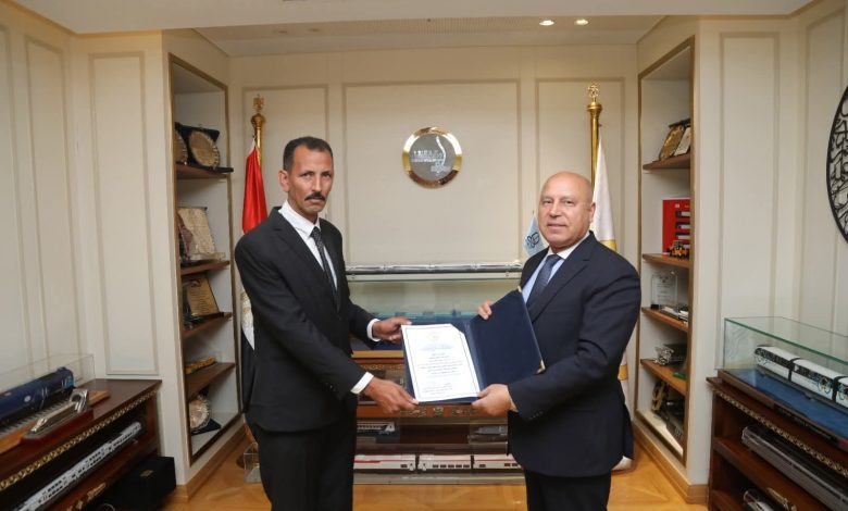 وزير الصناعة والنقل يكرم سائق أتوبيس بشركة غرب ووسط الدلتا للنقل والسياحة عثر على شنطة بها مبلغ يتعدى مليون جنيه تخص أجنبيتين