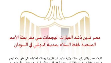 كتب: د/ حسين المصري أدانت جمهورية مصر العربية، بأشد العبارات، الهجمات التي استهدفت مقر بعثة الأمم المتحدة لحفظ السلام بمدينة…